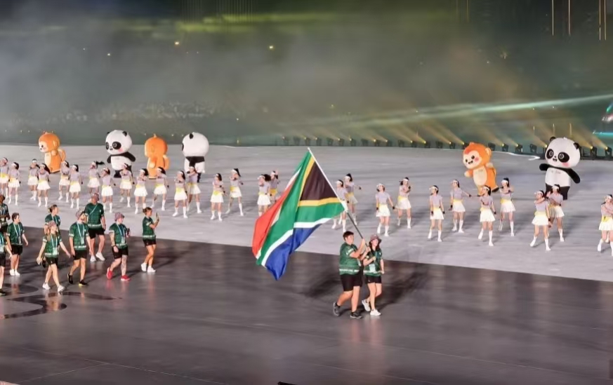 中國香港代表團入場引發(fā)全場歡呼。中國香港代表團由24名運動員組成,出戰(zhàn)武術、無人機競速、拉丁舞等11個項目的賽事。上一屆世運會中,中國香港隊收獲1金4銅,奪得歷史性成績。